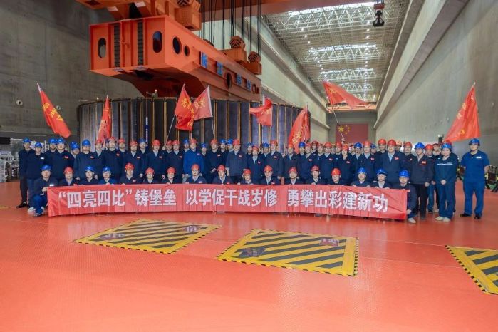 ▲長江電力檢修廠歲修現場“四亮四比”黨建品牌活動啟動儀式