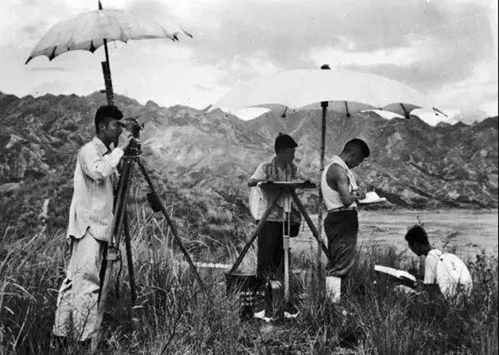 上世紀(jì)五十年代我國科技人員進(jìn)行壩址地質(zhì)勘察(陳仲原供圖)