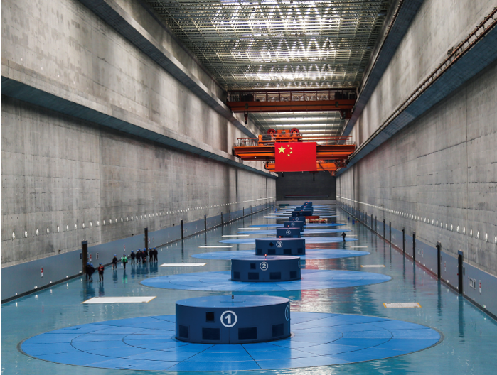 三峽水電站總裝機容量為2250萬千瓦,是當今世界上裝機容量最大的水電站,多年平均年發電量882億千瓦時。
