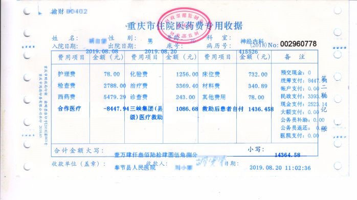 在奉節縣、巫山縣分別投入資金3500萬元、2800萬元,在重慶市統籌實施“五張網一站式結算”基礎上,對全縣住院建卡貧困患者自費超10%部分給予兜底救助,為60000名建卡貧困患者解決醫療費用。