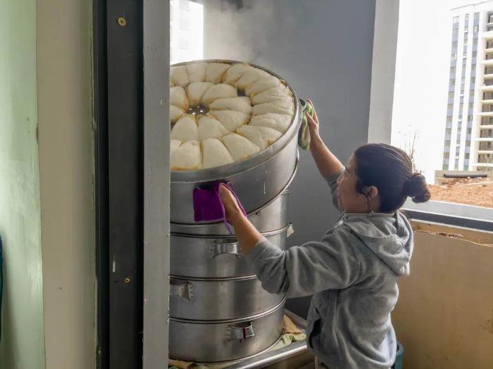 ▲ 正在張羅玉米粑粑的阿燕? 攝影:趙若伊