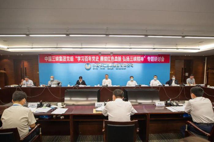 ▲三峽集團黨組理論學習中心組召開黨史學習教育專題研討會
