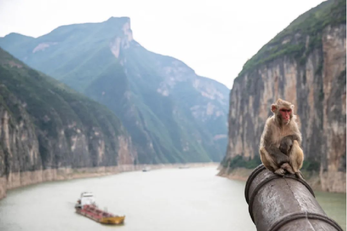 ▲?在重慶市奉節(jié)縣瞿塘峽拍攝的猴子。攝影:新華社記者 儲(chǔ)加音