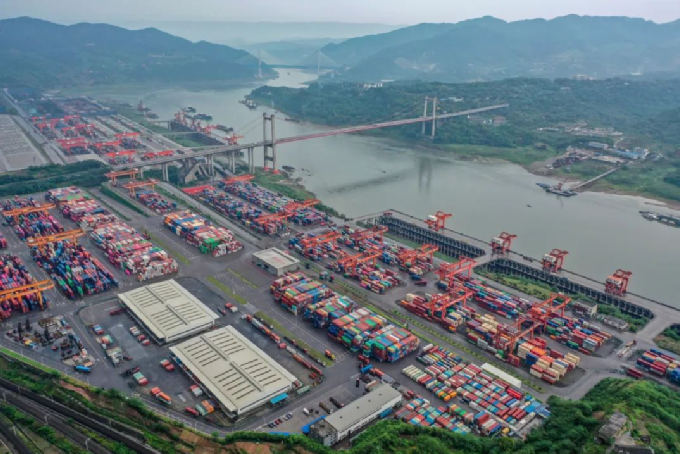 ▲?位于長(zhǎng)江重慶段的果園港,是我國(guó)內(nèi)河最大的水鐵公多式聯(lián)運(yùn)樞紐港。從小碼頭到長(zhǎng)江上游最大港口,果園港向著更快捷、更智慧、更綠色快速“奔跑”,逐漸蛻變成為成渝地區(qū)雙城經(jīng)濟(jì)圈開放門戶和長(zhǎng)江上游聯(lián)通世界的“中轉(zhuǎn)站”。攝影:新華社記者 唐奕