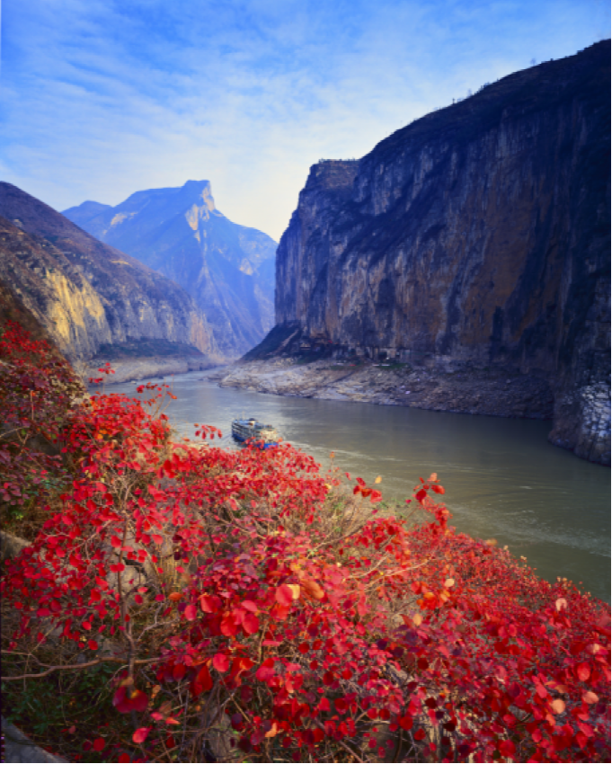 溝通巴蜀與中東部的長(zhǎng)江上游段,俗稱川江,或稱蜀江,一般指四川宜賓至湖北宜昌之間的河段,全長(zhǎng)約1030公里。重慶以上的370公里為上川江,重慶以下的660公里稱為下川江,下川江流經(jīng)丘陵和高山峽谷地區(qū)落差120米的三峽地區(qū),因兩岸山巒夾峙,水流急湍,所以又有“峽江”之稱。詩(shī)圣杜甫詩(shī)云——“高江急峽雷霆斗,古木蒼藤日月昏”,描繪的就是三峽的險(xiǎn)峻。