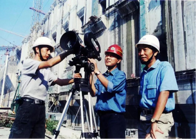 ▲?李忠和同事們在三峽工程建設(shè)現(xiàn)場拍攝 湖北電影制片廠供圖