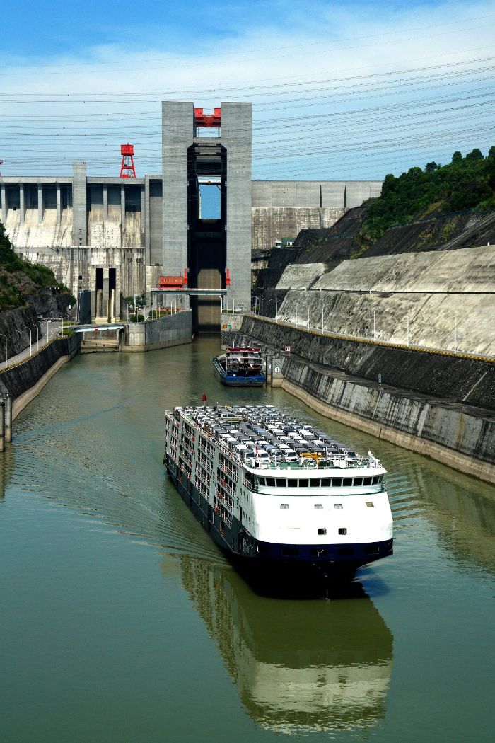 ▲船舶通過三峽升船機? 攝影:湯偉